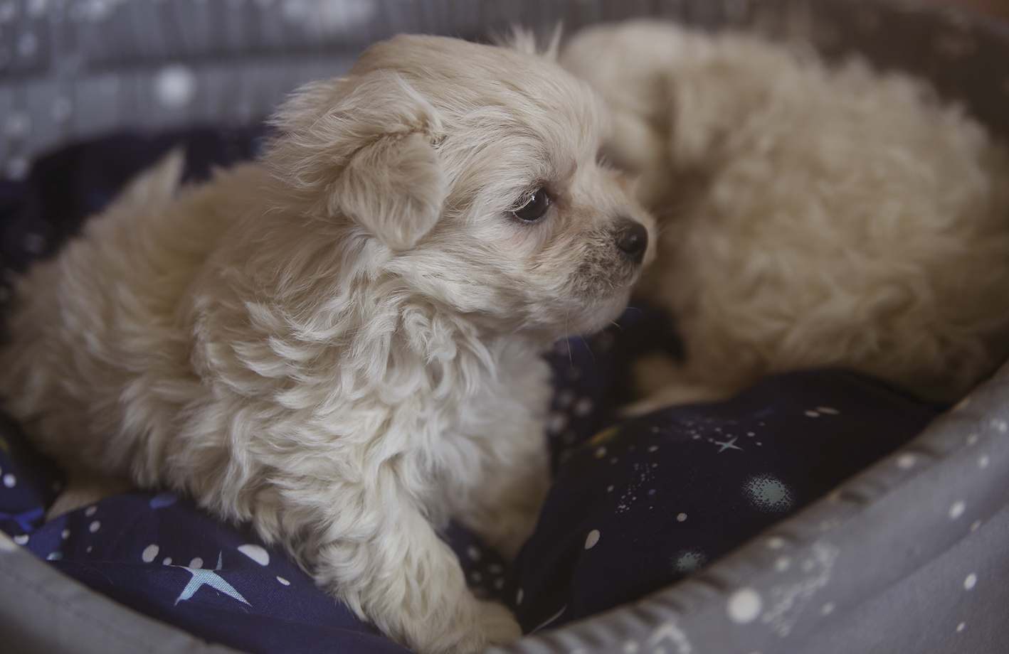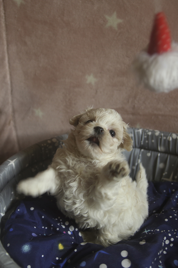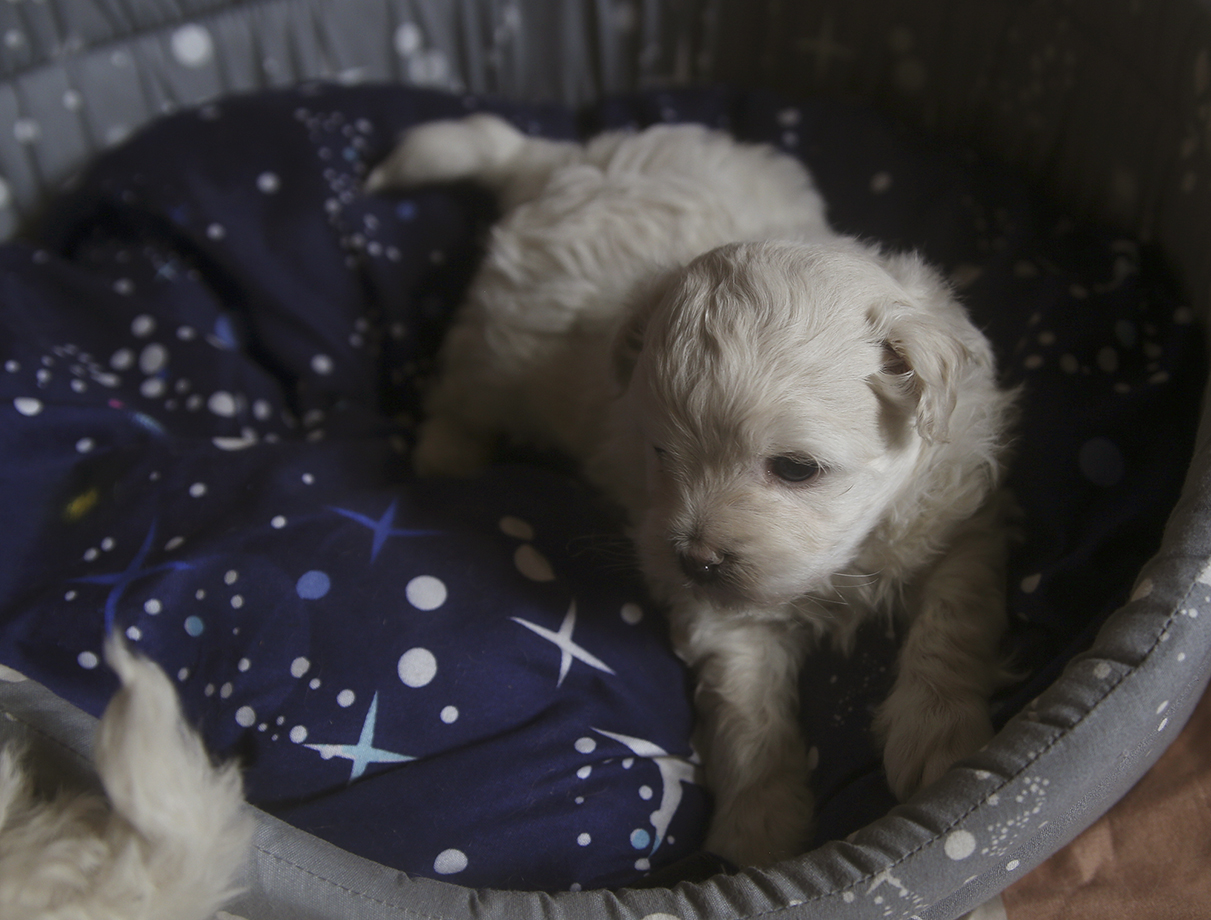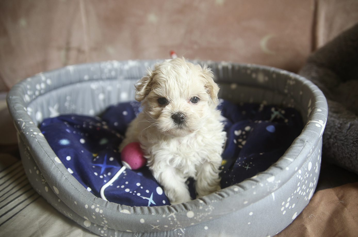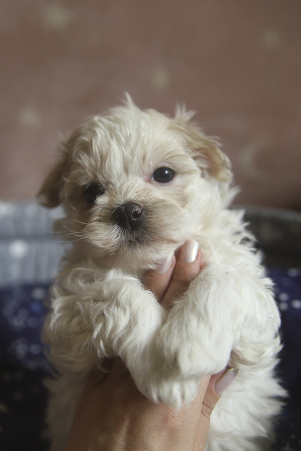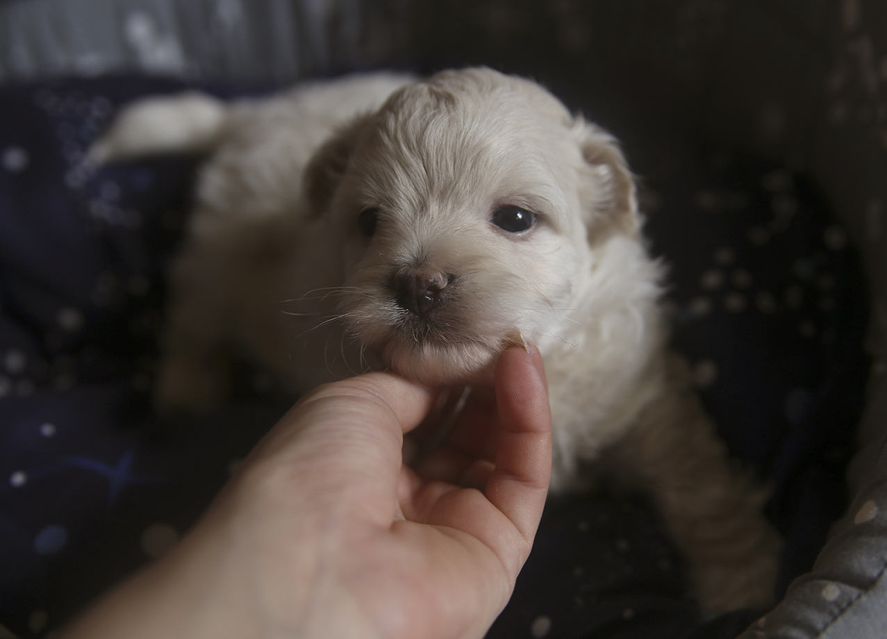 Кремовая кудряшка, миниатюрная ручная девочка, любит ласку и внимание и даже в таком возрасте уже не против груминга