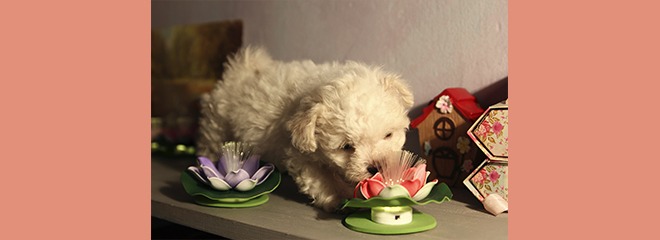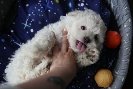 Светло-кремовая кудряшка, самая любознательна и общительная.