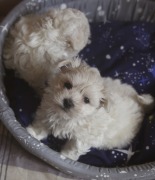 Белоснежный, очень кудрявый мальчик. Родился единственным щенком, все лучшее от мамы досталось ему одному.